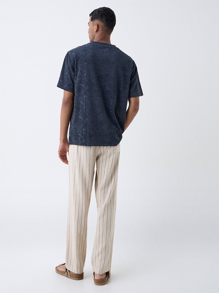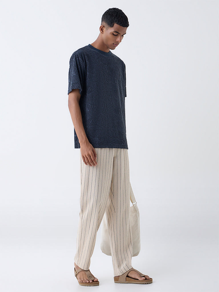 ETA Beige Pinstriped Relaxed-Fit Mid-Rise Cotton Trousers