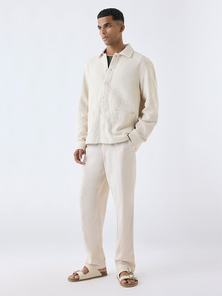 Revamp your casual rotation with this cream jacquard shirt from ETA. Dual welt pockets and a relaxed shape offer just the right amount of utility, while the subtle woven detail brings dimension to everyday outfits. Pair with neutral chinos or wide-leg pants for a fashion-forward look.