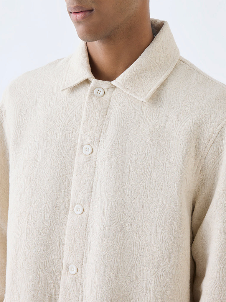 ETA Light Beige Paisley Design Relaxed-Fit Cotton Jacket