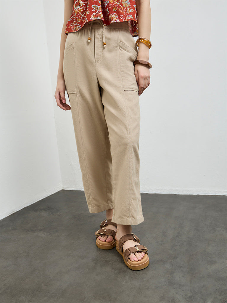 Bombay Paisley Beige Solid Cotton-Blend Pants