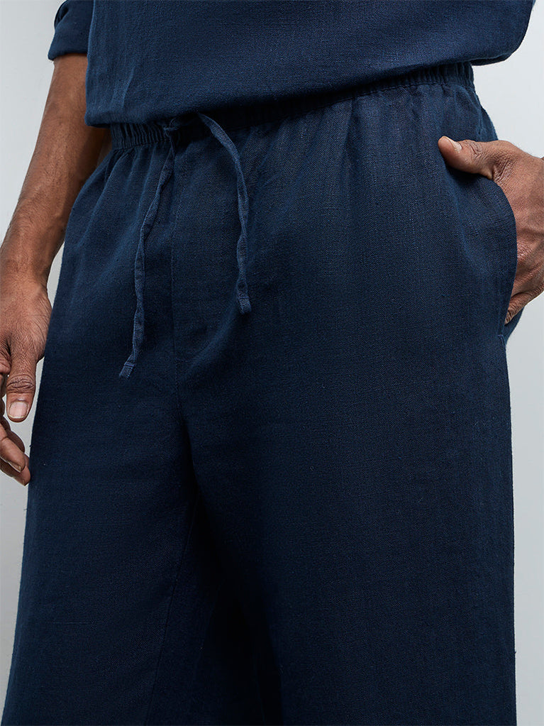 Ascot Indigo Relaxed-Fit Mid-Rise Linen Chinos