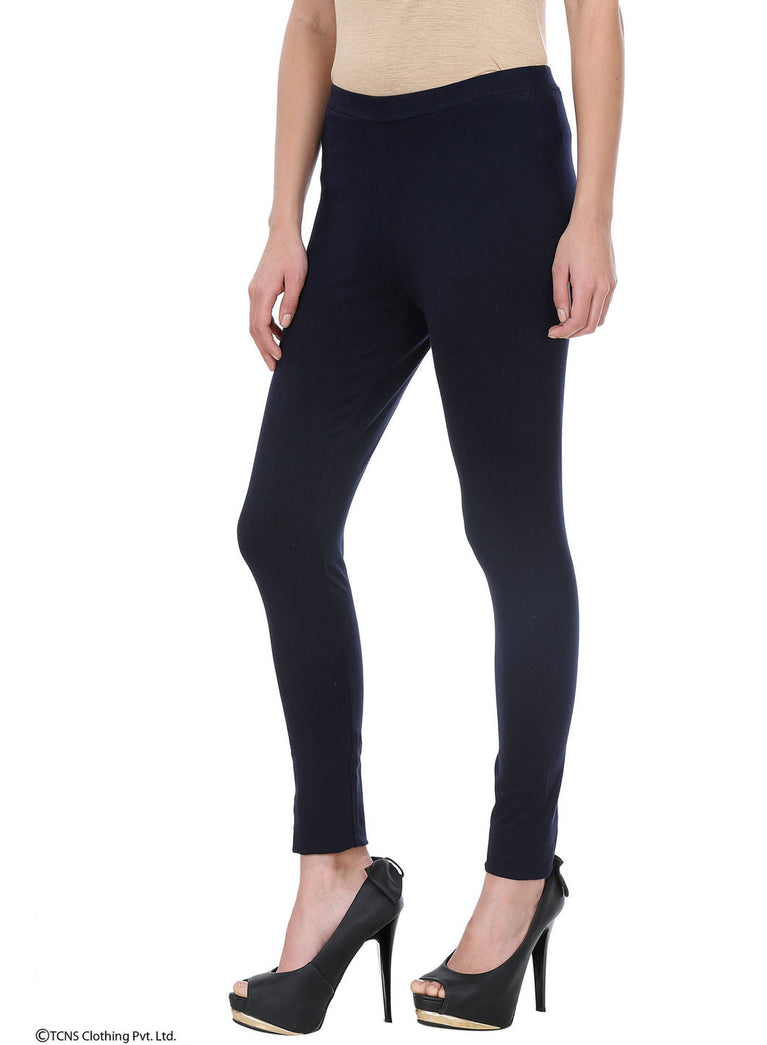 Blue Solid Skinny-fit Knit Tights with Elasticated Waistband
