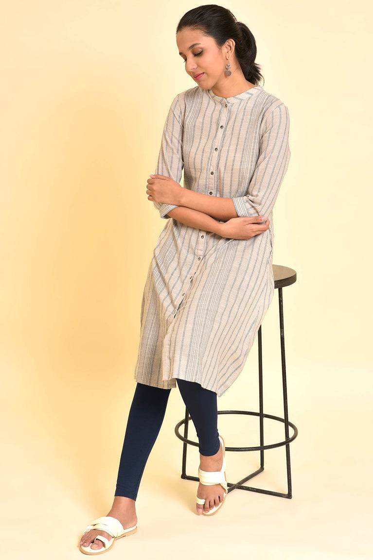 Crafted for effortless style and comfort, these beige tights are your go-to choice for casual outings. Made from a soft knit fabric, they offer a snug skinny fit that flatters your silhouette while ensuring all-day ease. The mid-rise design with concealed elastication adds a touch of practicality, making them perfect for pairing with tunics, kurtas, or oversized tops. Whether you're running errands or enjoying a relaxed day out, these tights promise versatility and chic appeal.