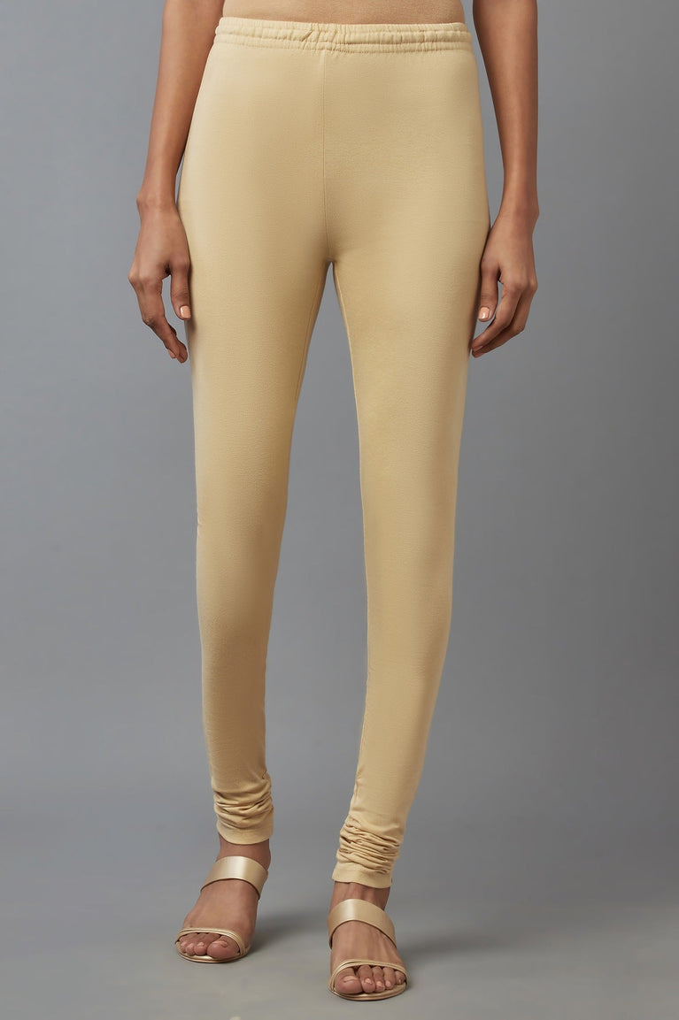 Beige Solid Skinny Fit Cotton Tights With Elasticated Waist