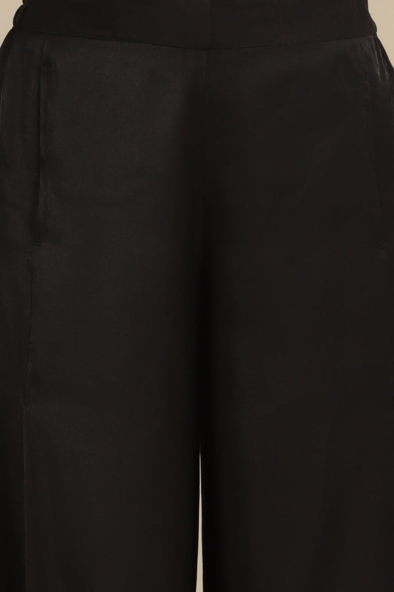 Black Solid Flared Rayon Palazzo With Pleated Detail