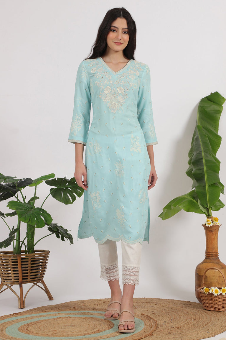Embrace everyday elegance with this pure cotton straight women's kurta, a perfect blend of comfort and charm. Crafted from soft and breathable pure cotton, this kurta features a soothing blue hue adorned with delicate floral prints, making it ideal for warm-weather dressing. The straight silhouette offers a flattering fit that suits all body types, while the classic round neckline and three-quarter sleeves add to its timeless appeal. Whether you're heading to work, a casual lunch, or a relaxed evening outing, this kurta ensures style without compromising on comfort.