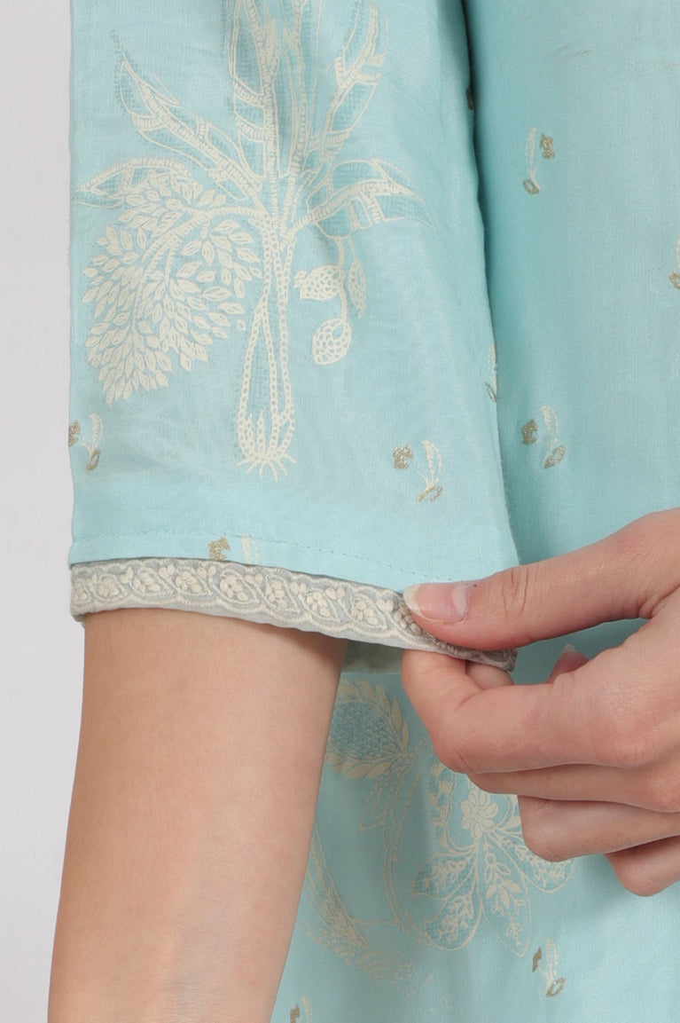Bue Floral Printed Pure Cotton Straight Kurta with Lace