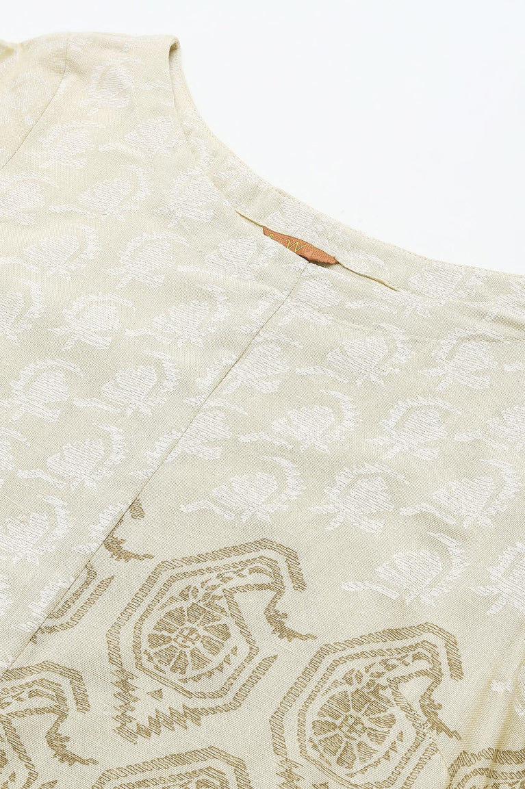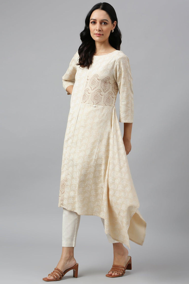 Beige Asymmetric Paisley Print kurta In Boat Neck
