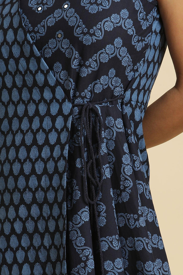 Discover the perfect blend of comfort and style with this women's blue kurta. Crafted from 100% pure cotton, this woven piece ensures breathability and softness against your skin. The sleeveless design and round neckline offer a contemporary twist to the traditional ethnic wear, making it ideal for casual outings. The a-line silhouette flatters various body types, while the printed pattern adds a touch of elegance. This versatile kurta is a must-have addition to your wardrobe, perfect for those who appreciate the fusion of modern aesthetics with ethnic charm. Pair it with stylish sandals to complete the look, exuding effortless elegance. Versatile and timeless, this outfit is perfect for making a statement at any occasion, day or night.