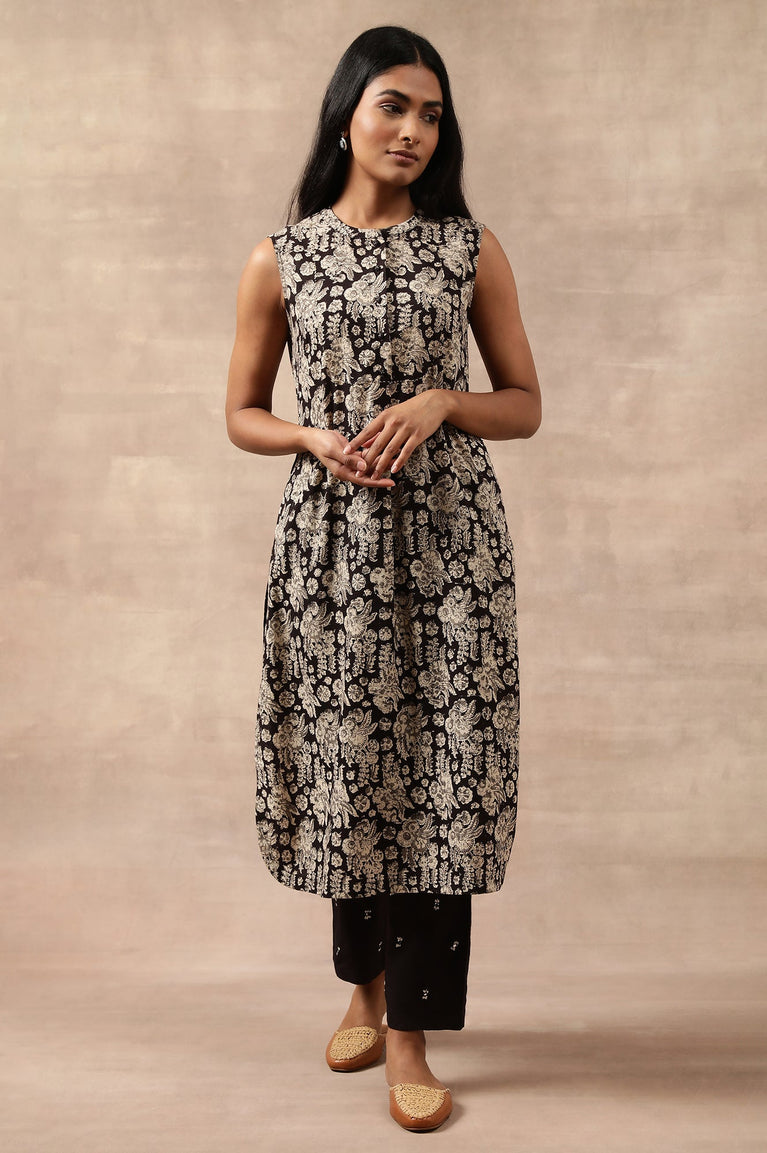Discover the perfect blend of comfort and style with this captivating fusion top for women. Made from 100% pure cotton, this sleeveless top offers unparalleled breathability and softness, ideal for casual outings. The black hue provides a versatile canvas for the eye-catching floral print, adding a touch of feminine charm to your ensemble. The keyhole neckline introduces an element of intrigue and sophistication, while the A-line silhouette flatters various body shapes. This woven garment showcases expert craftsmanship, ensuring durability and a polished appearance. The sleeveless design makes it a great choice for warm weather or layering under jackets. Whether you're meeting friends for brunch or enjoying a leisurely weekend stroll, this floral printed cotton top will keep you looking effortlessly chic and feeling comfortable throughout the day.