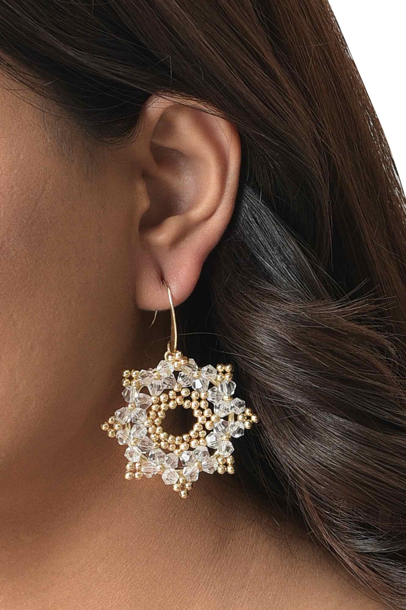 Beige Handcrafted Jhumki With Bead Work