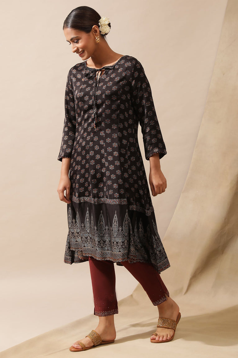 Angrakha Style Flared kurta In Handblock Print, Features Tie-Up And Thoughtfully Designed Tassels.