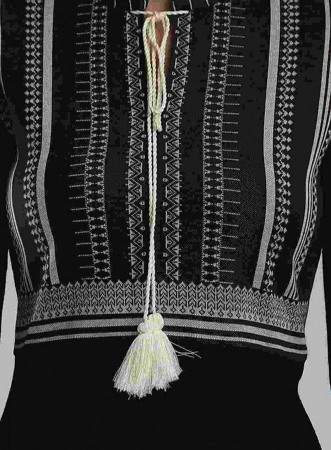 Black Woollen round neck kurta with printed detail.