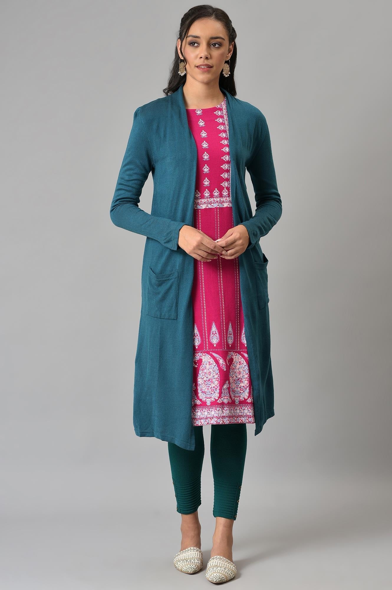Blue Basic Longline Cardigan With Pockets.