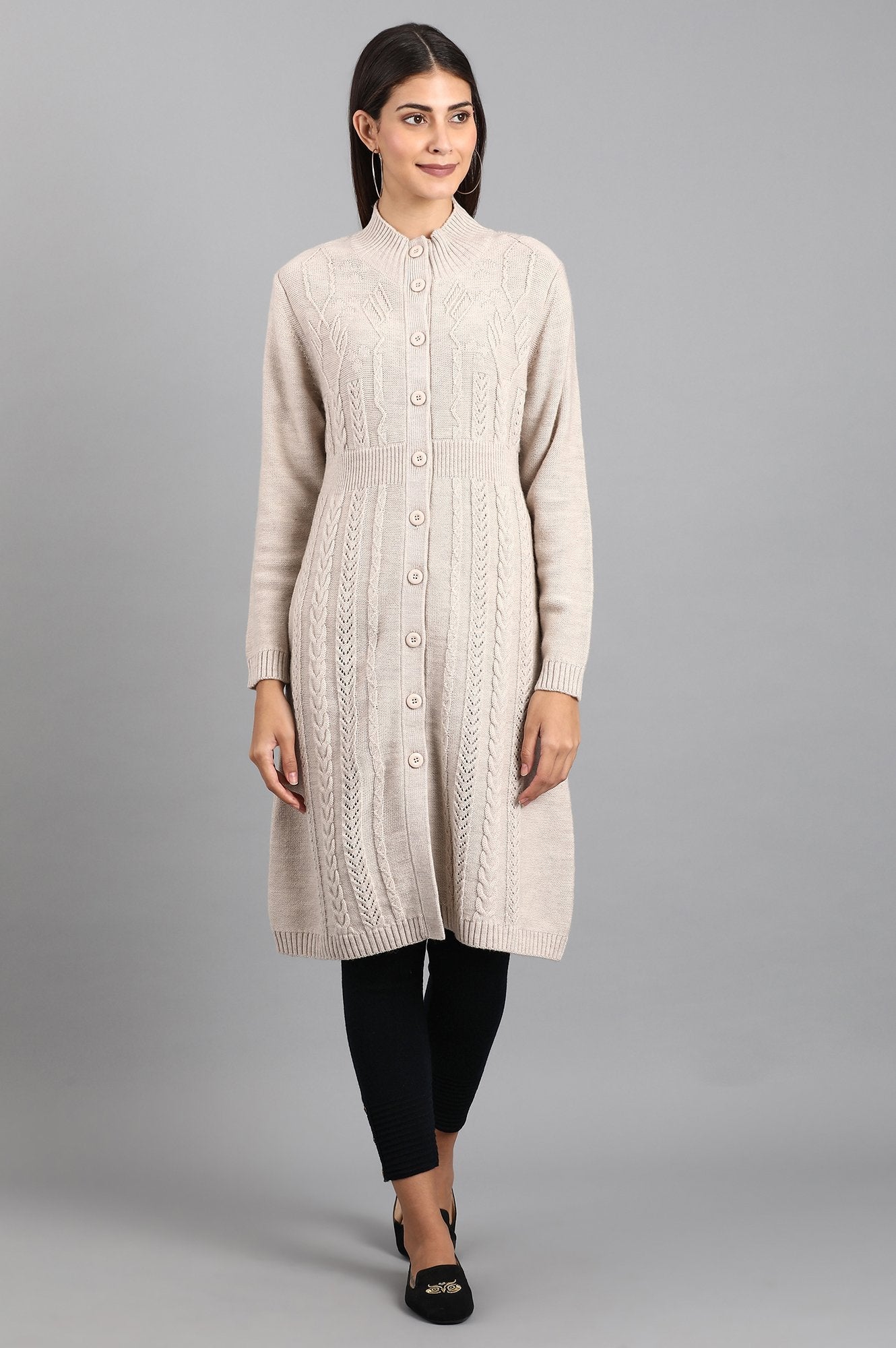 Blue Woollen leggings with elasticated waistband and placket detail at hem.