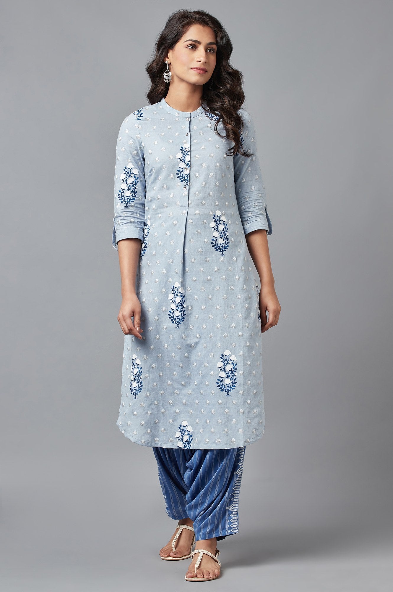 Blue Y/D striped draped pants in mid-rise and partially elasticated waistband.