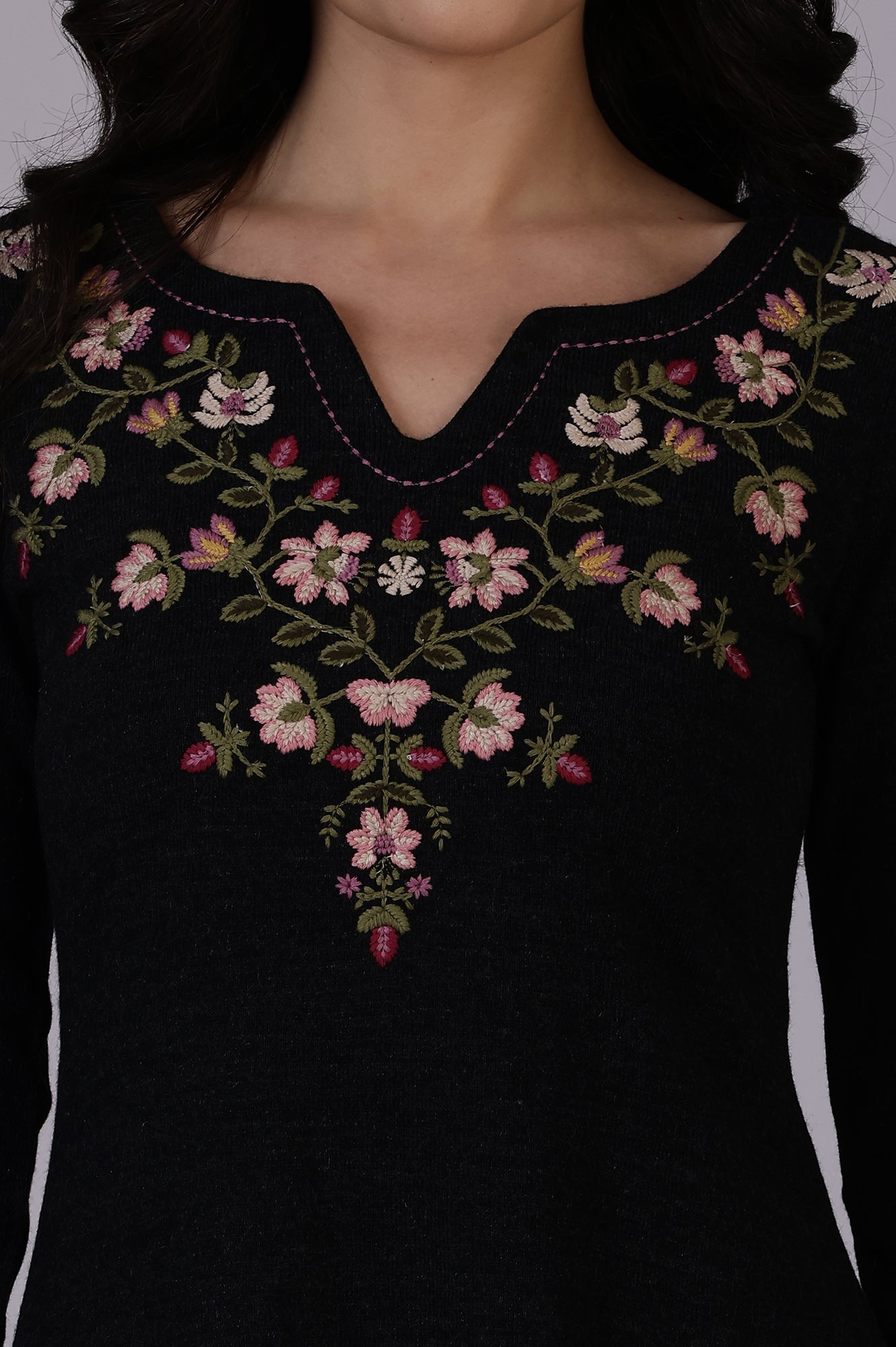 Discover the perfect fusion of style and comfort with this stunning knee-length kurta from W. Designed for the modern woman who appreciates both tradition and contemporary fashion, this anthracite-colored kurta is a versatile addition to your casual wardrobe. Crafted from 100% acrylic, this knitted kurta offers a soft and cozy feel against your skin. The A-line silhouette flatters various body types, while the full sleeves provide elegance and modesty. A striking V-neckline adds a touch of allure, beautifully complemented by intricate thread work that showcases the brand's attention to detail. The kurta features a stylish slit, adding movement and ease to your stride. Perfect for casual outings or relaxed gatherings, this fusion piece effortlessly blends ethnic charm with modern sensibilities. The anthracite color lends a sophisticated touch, making it easy to accessorize with both traditional and contemporary jewelry. Whether paired with leggings, palazzo pants, or jeans, this versatile kurta allows you to create multiple looks for different occasions. The acrylic fabric ensures easy care and maintenance, making it a practical choice for your everyday wardrobe. Embrace the perfect balance of comfort, style, and tradition with this exquisite kurta from W.
