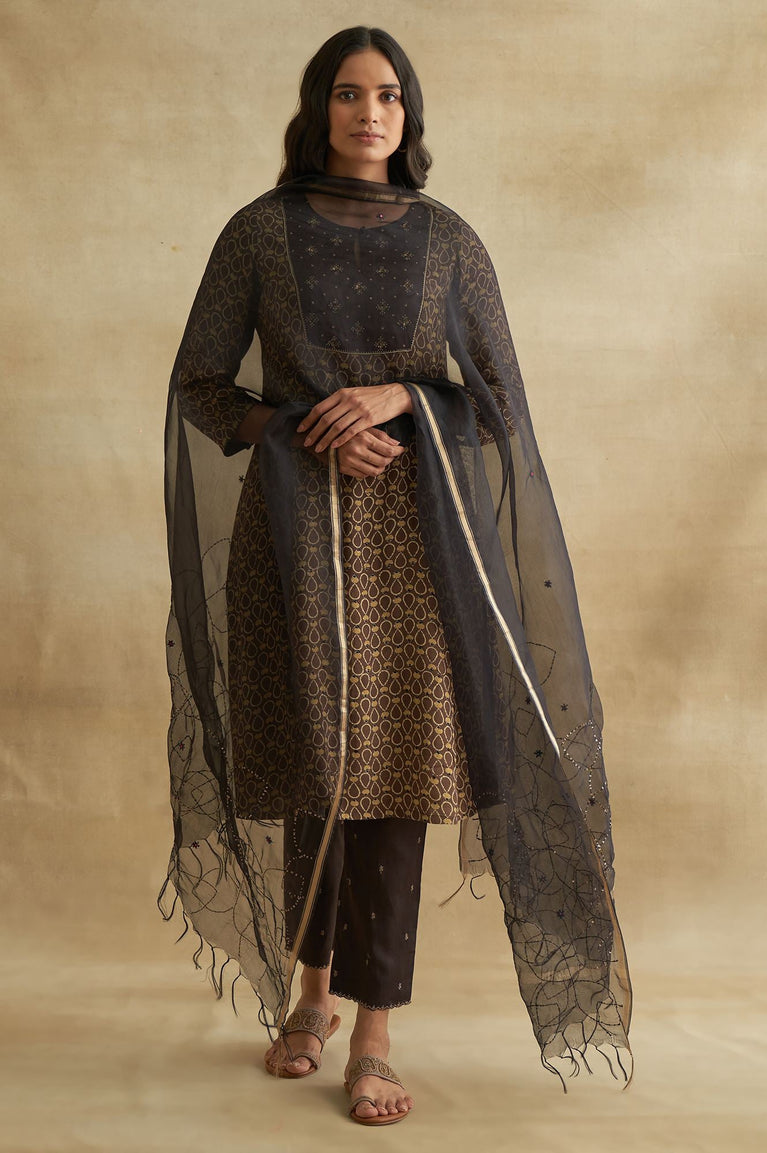 Tailored for effortless style, these dark brown solid straight pants are crafted from breathable woven cotton, perfect for casual and formal settings. Featuring a mid-rise drawstring waist, these pants offer a regular fit that flatters every body type. The straight-leg silhouette ensures a timeless appeal, while the two functional slant pockets add practicality. Designed for comfort and versatility, these pants are ideal for pairing with printed kurtas or casual tops. The lightweight fabric and solid pattern make them a must-have for your wardrobe.