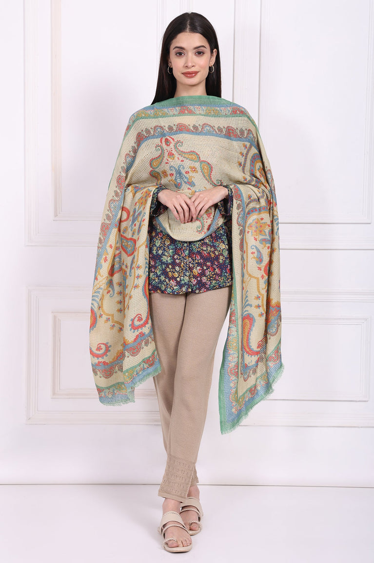 Beige Paisley Wool Stole