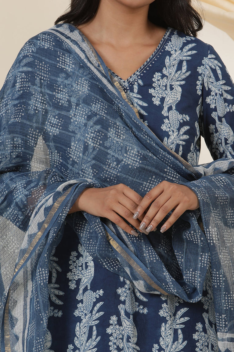 Embrace ethnic elegance with this women's blue kurta and parallel pants set. Crafted from pure cotton, this woven ensemble offers both comfort and style for casual occasions. The three-quarter sleeves and round neckline add a touch of sophistication to the a-line silhouette. The abstract printed design brings a modern twist to traditional ethnic wear, making it a versatile choice for various casual settings. This 100% cotton set ensures breathability and ease of movement, perfect for those who appreciate both fashion and comfort in their ethnic attire. Pair it with stylish sandals to complete the look, exuding effortless elegance. Versatile and timeless, this outfit is perfect for making a statement at any occasion, day or night.