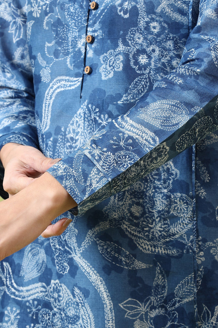 Blue Floral Printed Pure Cotton Tunic and Pants Co-ord Set