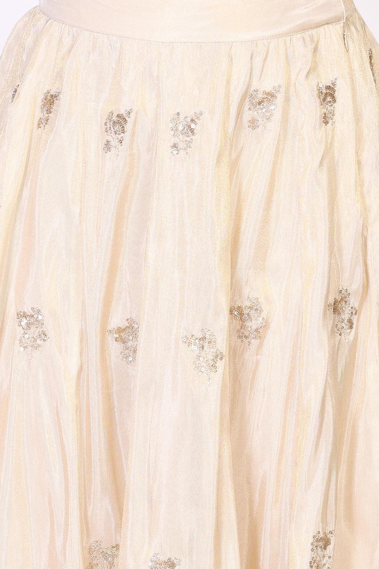 Beige Floral Sequined Flared Tissue Skirt