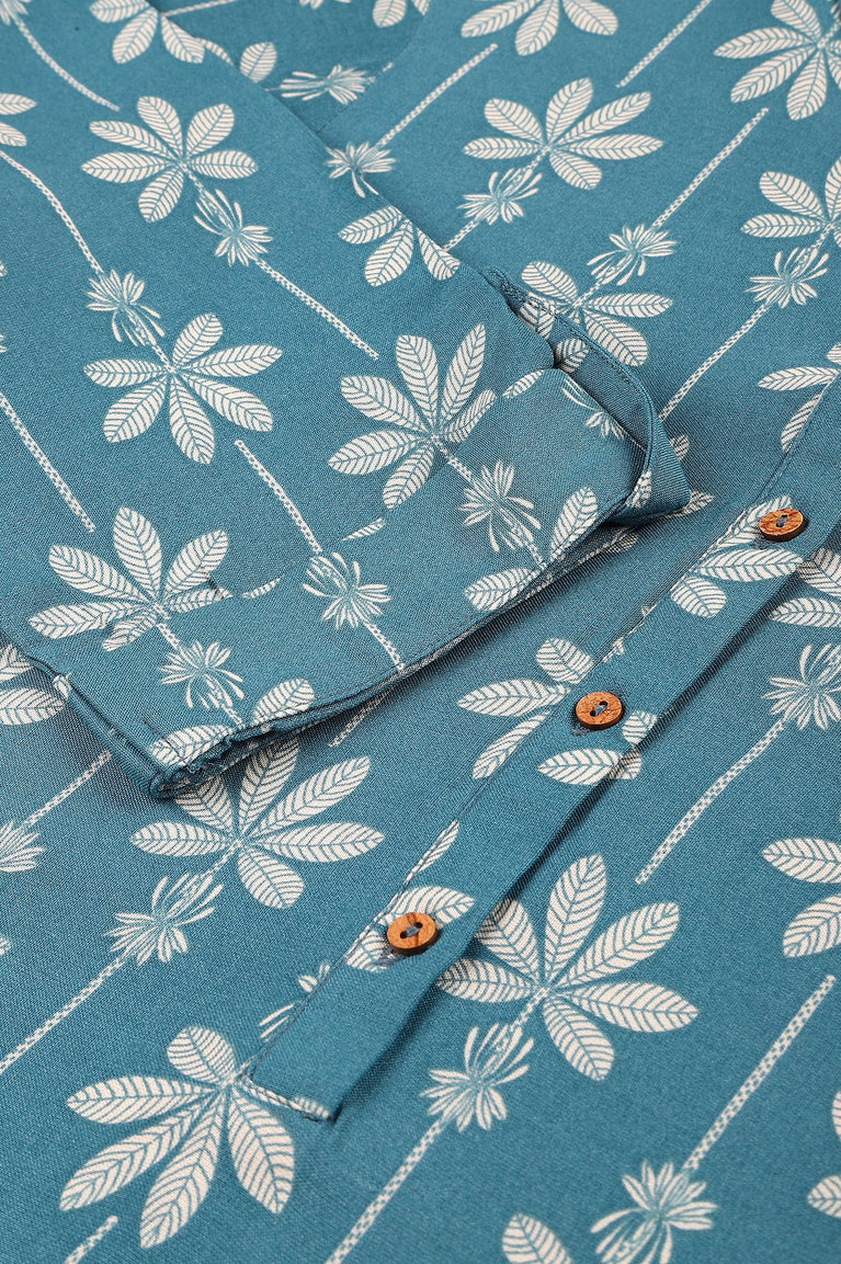All Over Palm Printed Button Down Kurta With Quarter Sleeves And Tab Detail