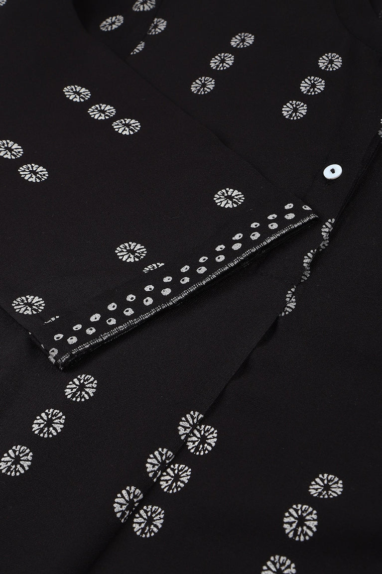 Get Ready For The Elegant And Stylish Office Look With This Printed Black Shirt Kurta. The Kurta Has Mandarin Collar And Button Placket. It Is Paired With Black Slim Pants Having Contrast Embroidery On Hemline.
