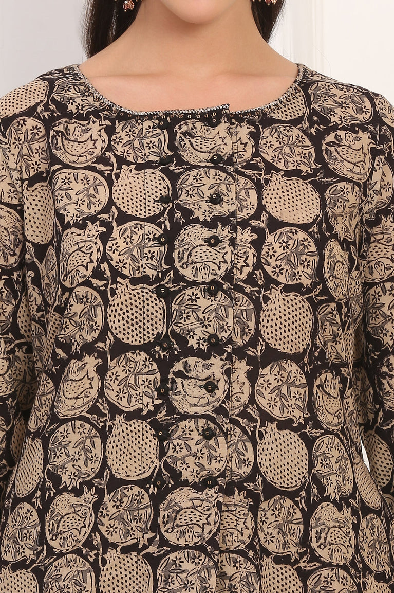 Black Kalamkari Printed Pure Cotton A-Line Kurta and Pants Co-ord Set