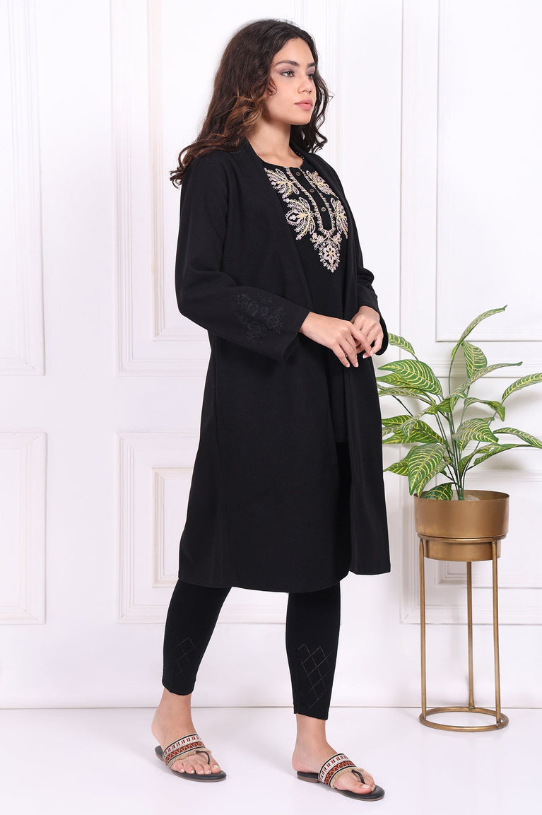 Black Embroidered Straight Acrylic Tunic