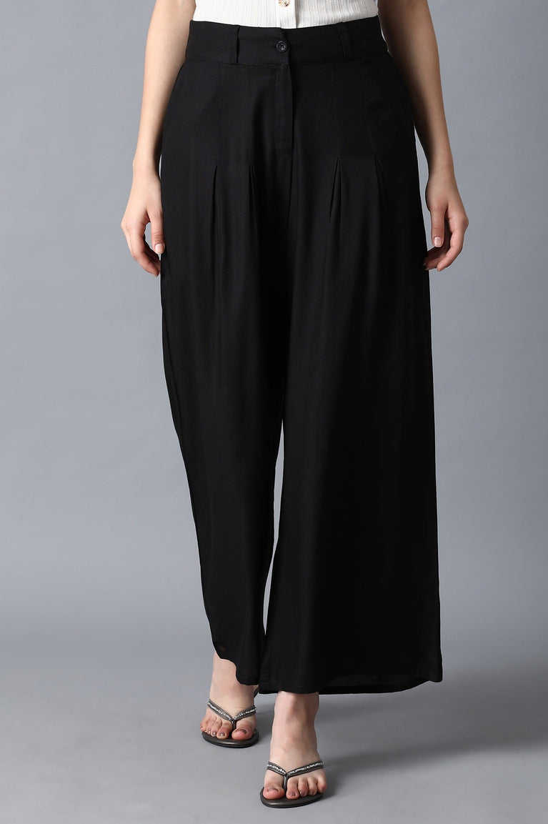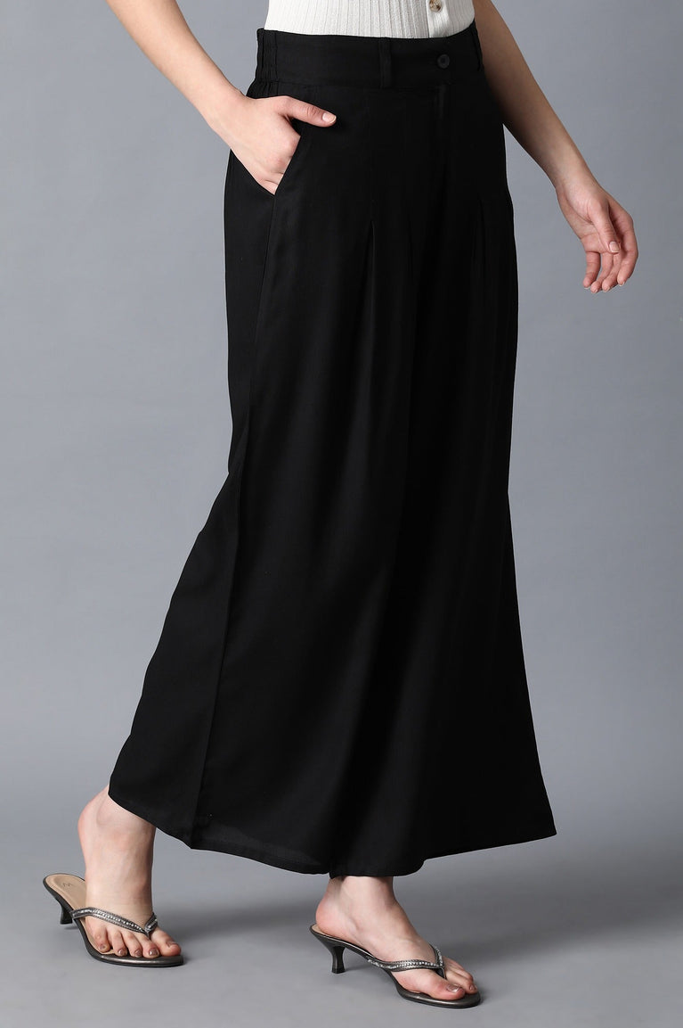 Black Solid Boot Cut Palazzo With Elasticated Waist