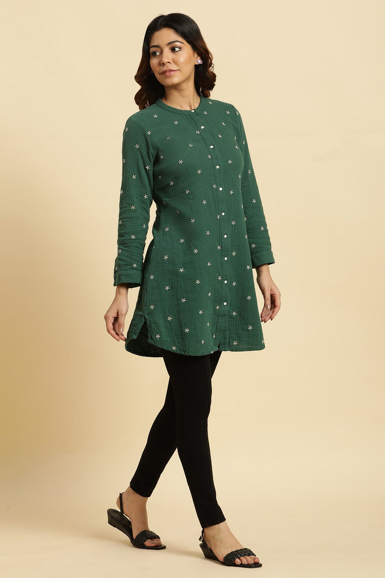 When comfort becomes a statement, you get this impeccably designed kurta for women. Crafted in a timeless Deep Navy, this piece is your answer to chic winter ethnic wear. The experience begins with the fabric—a soft-to-the-touch acrylic knit that promises warmth without weight, gliding over your form with a gentle grace. Its A-line silhouette is universally flattering, offering a relaxed yet refined profile. The true artistry lies in the details: a classic round neckline is brought to life with a garland of vibrant, multi-tonal floral embroidery, a motif that is beautifully mirrored at the cuffs of the full-length sleeves. This opaque knit ensures complete coverage, while the straight hemline and side slits maintain a traditional yet fluid line. This garment isn't just a piece of clothing; it's a feeling. As a standalone embroidered acrylic kurta, this versatile tunic is perfect for pairing with your favorite trousers, making it an essential for both casual outings and elevated day events. It's the kind of style you'll feel truly good in.