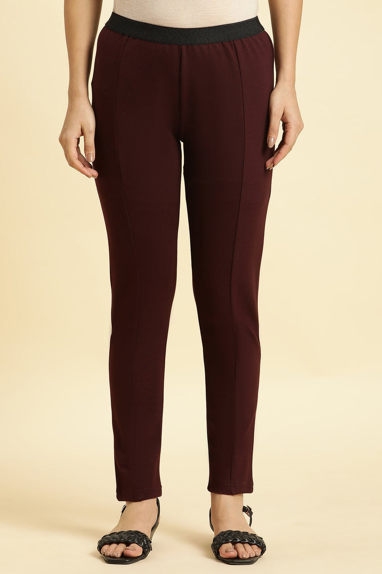 Maroon Solid Skinny Rayon Legging
