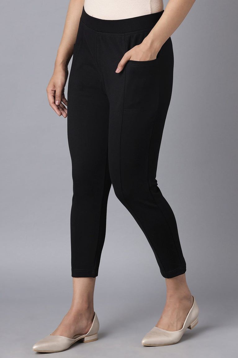 Black Solid Straight Fit Tights With Elasticated Waistband