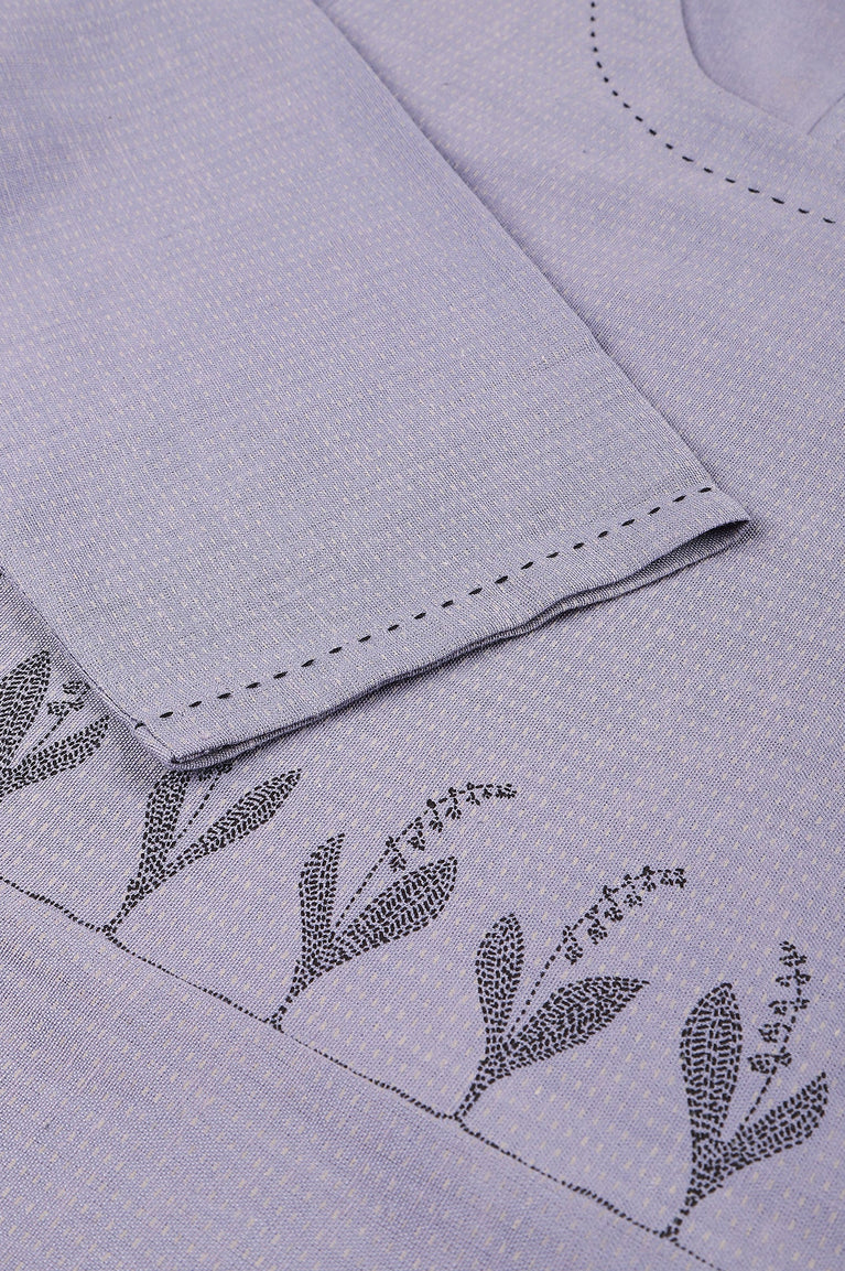 Blue Floral kurta With Kantha Details