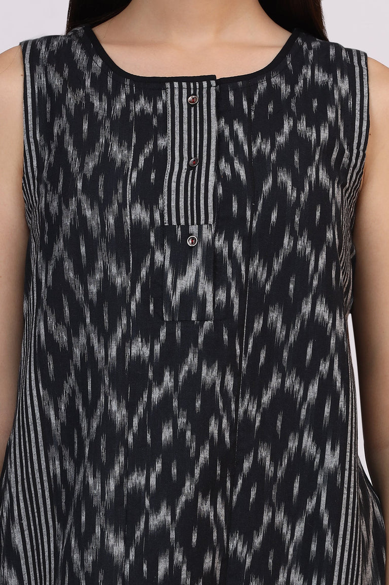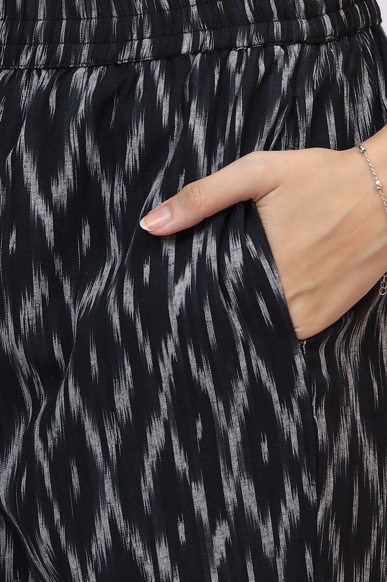 Black Ikkat Pure Cotton Straight Kurta and Pants Co-ord Set
