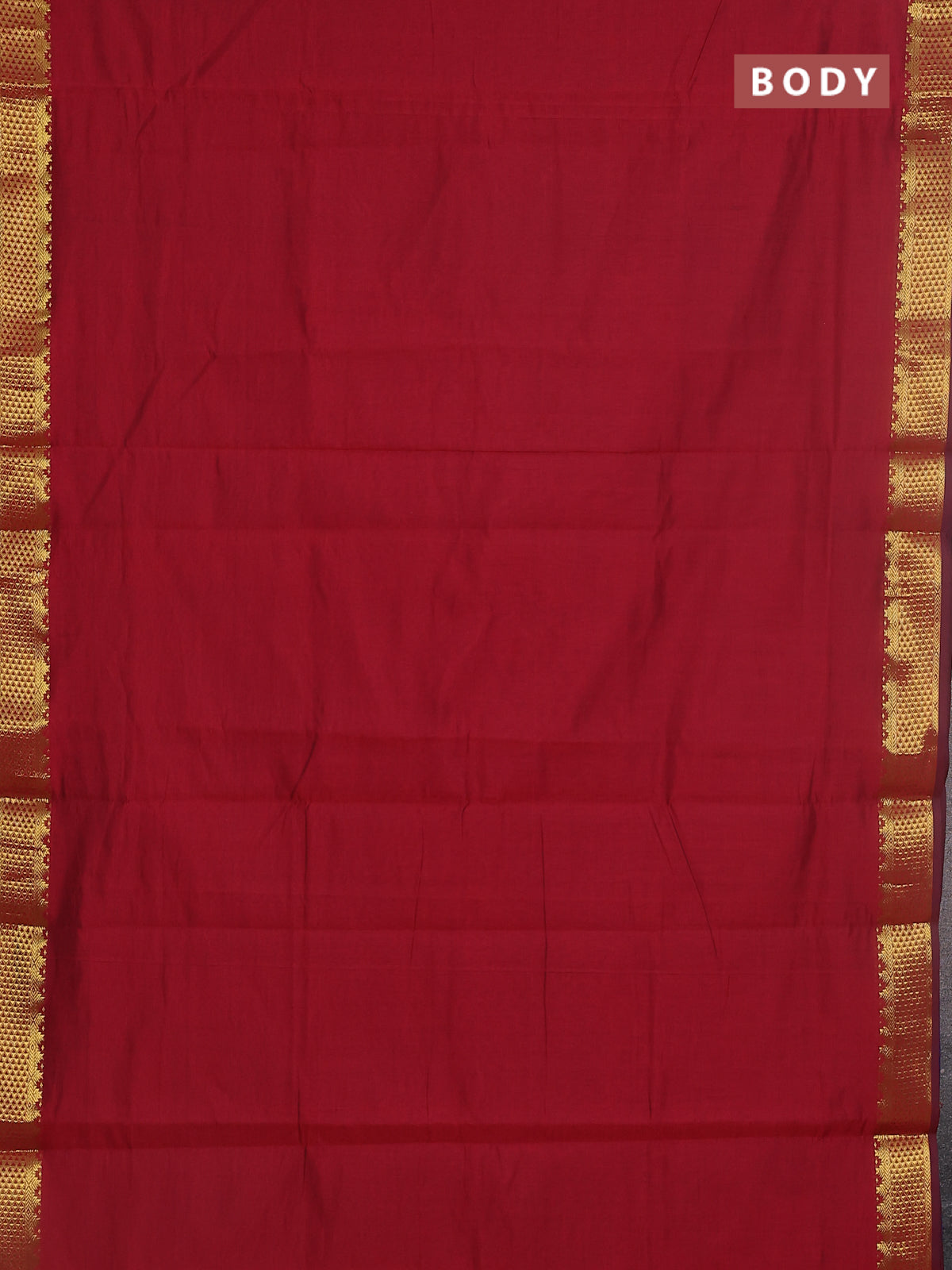 10 yards Poly cotton saree maroon and blue with plain body and zari woven border