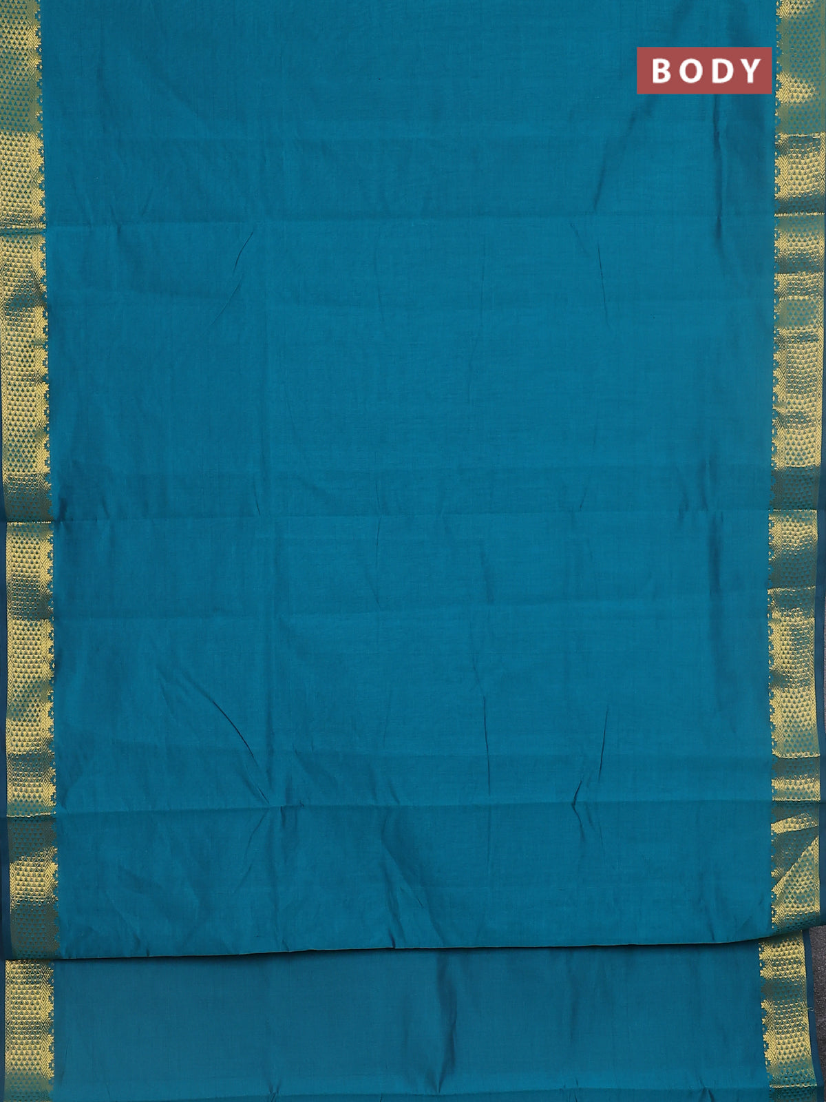 10 yards Poly cotton saree peacock green and purple with plain body and zari woven border