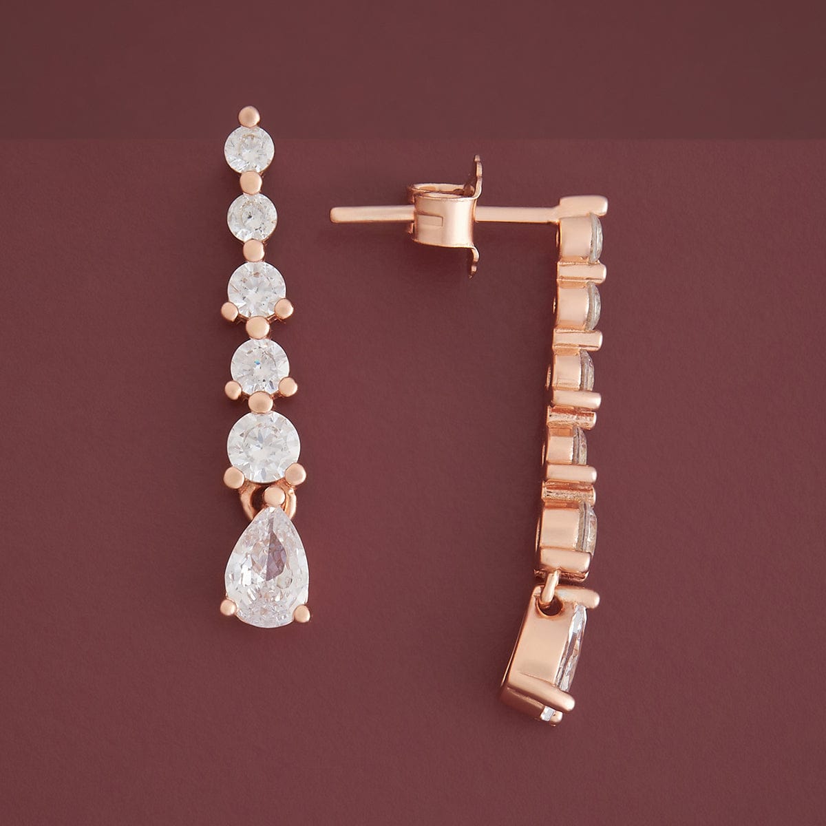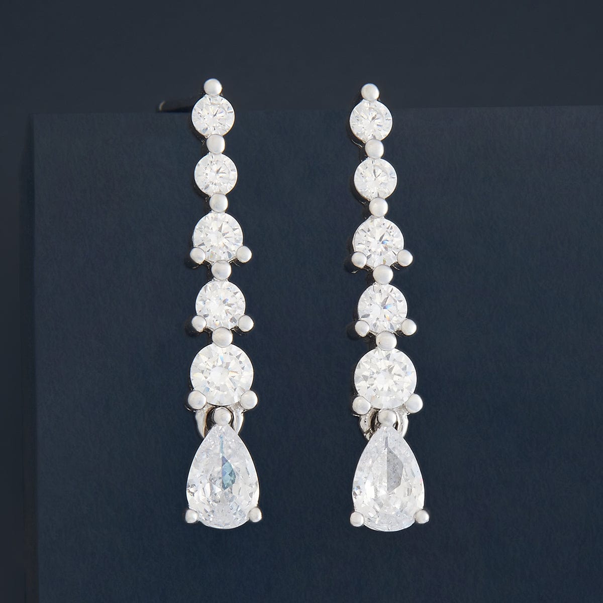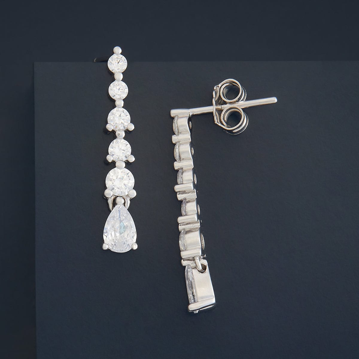 These 92.5 silver hanging earrings feature sparkling white zircon stones with a stunning zircon drop, available in rose gold, gold, or rhodium polish. Their versatile design makes them perfect for both Indian and Western outfits, adding an elegant and timeless touch to any look. Ideal for elevating your style on any occasion.