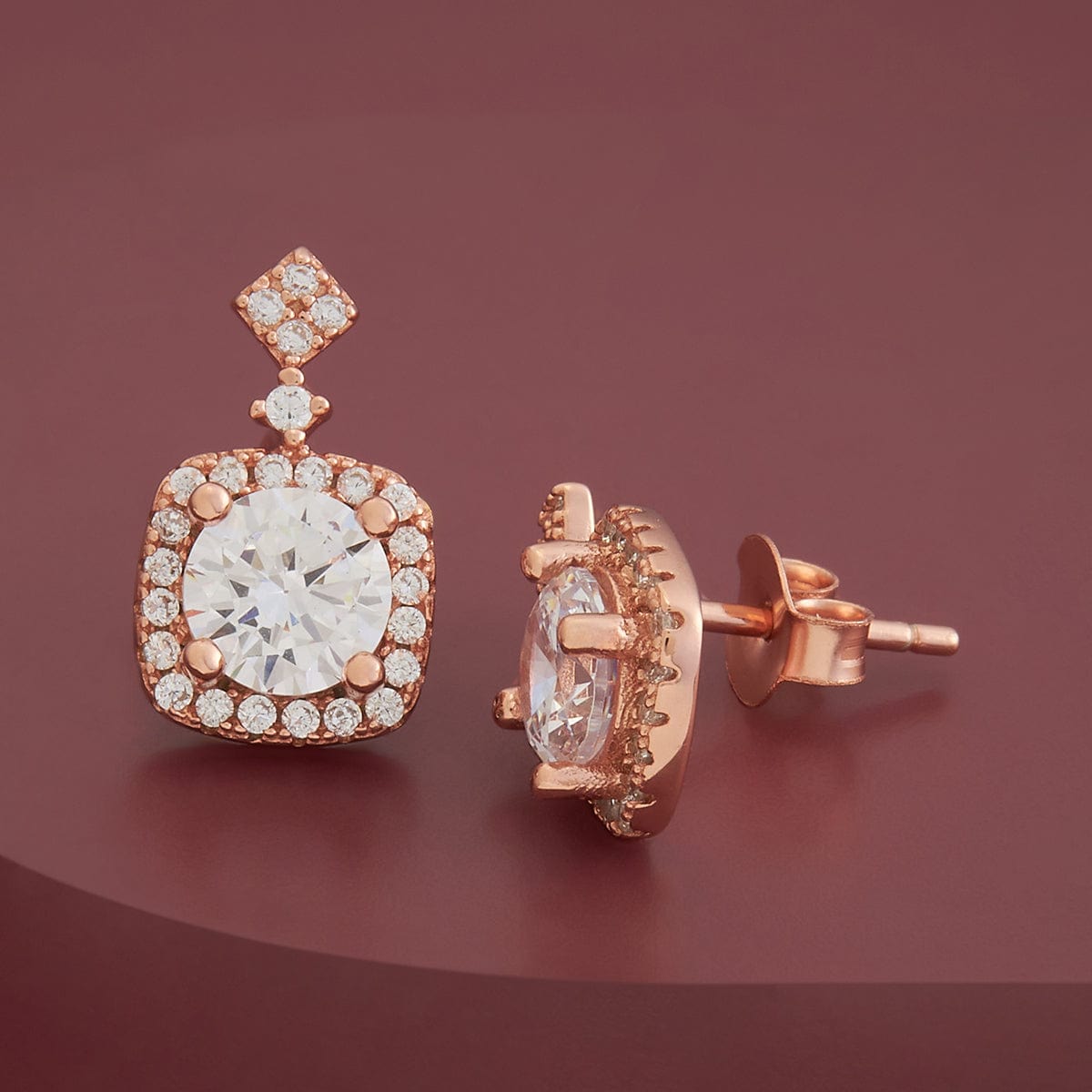 Elevate your wardrobe with these 92.5 silver earrings. Embellished with white-coloured stones, they are available in multiple polish hues: gold, rhodium and rose gold. Crafted from durable materials, these studs are ideal for both casual and formal wear. The push-back closure adds safety and ease of wear.
