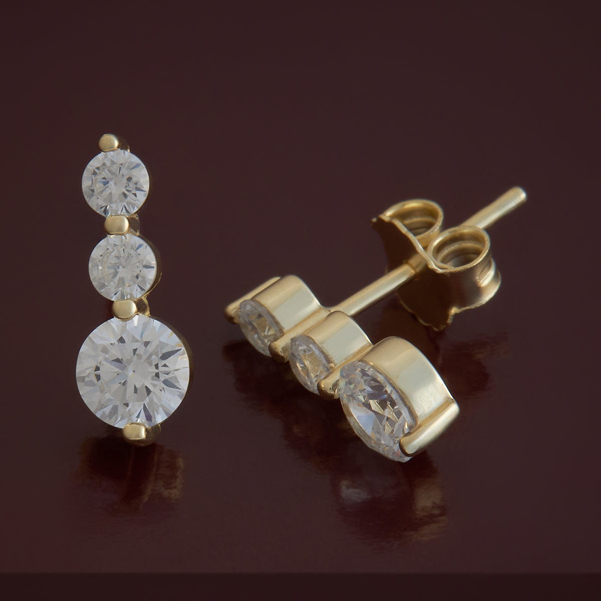 Simplicity meets elegance in these 92.5 silver earrings from Kushal's Fashion Jewellery. Featuring sparkling white zircon stones, these studs are available in three stunning finishes: gold, rhodium, and rose gold to choose from. Crafted from the finest 92.5 silver and featuring a secure push-back closure, they offer effortless elegance and comfort.