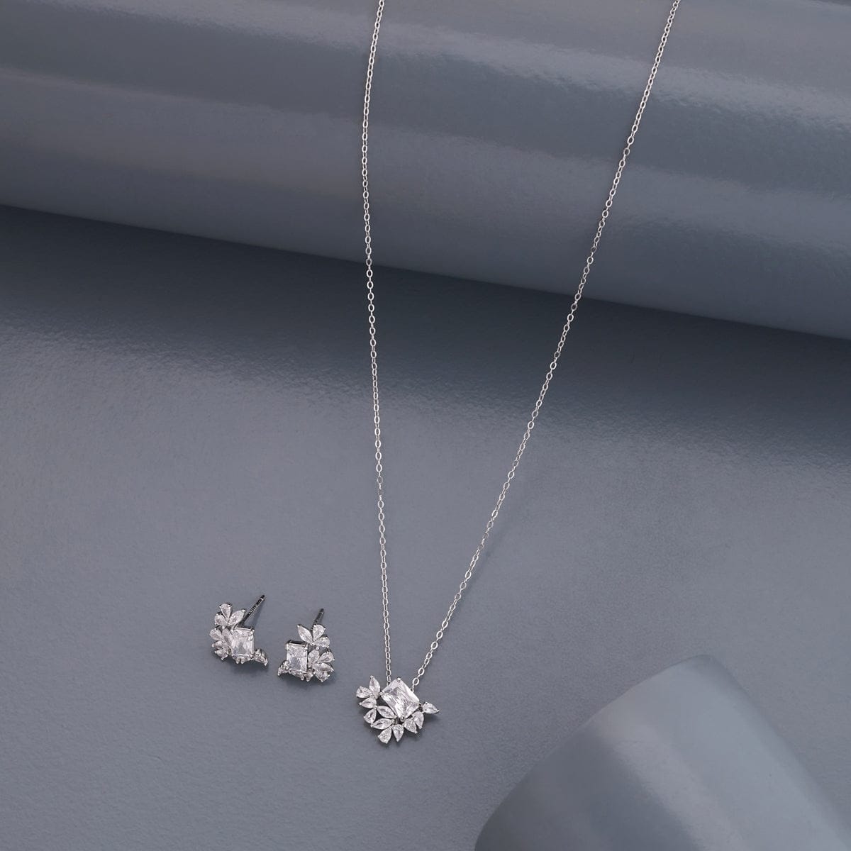 92.5 Silver Pendant with Chain and Earring Set 194805