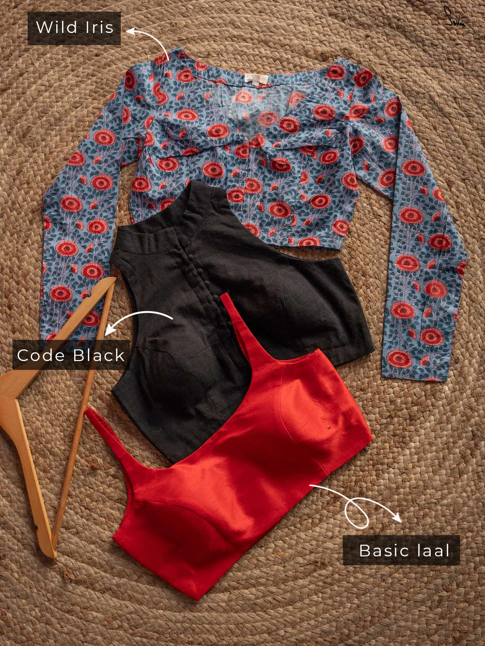 Shine every day with Aakari! Aakari includes three blouses made from cotton and artificial silk. It’s a set that combines softness with a touch of luxury, making it easy to add a little extra to your everyday look.