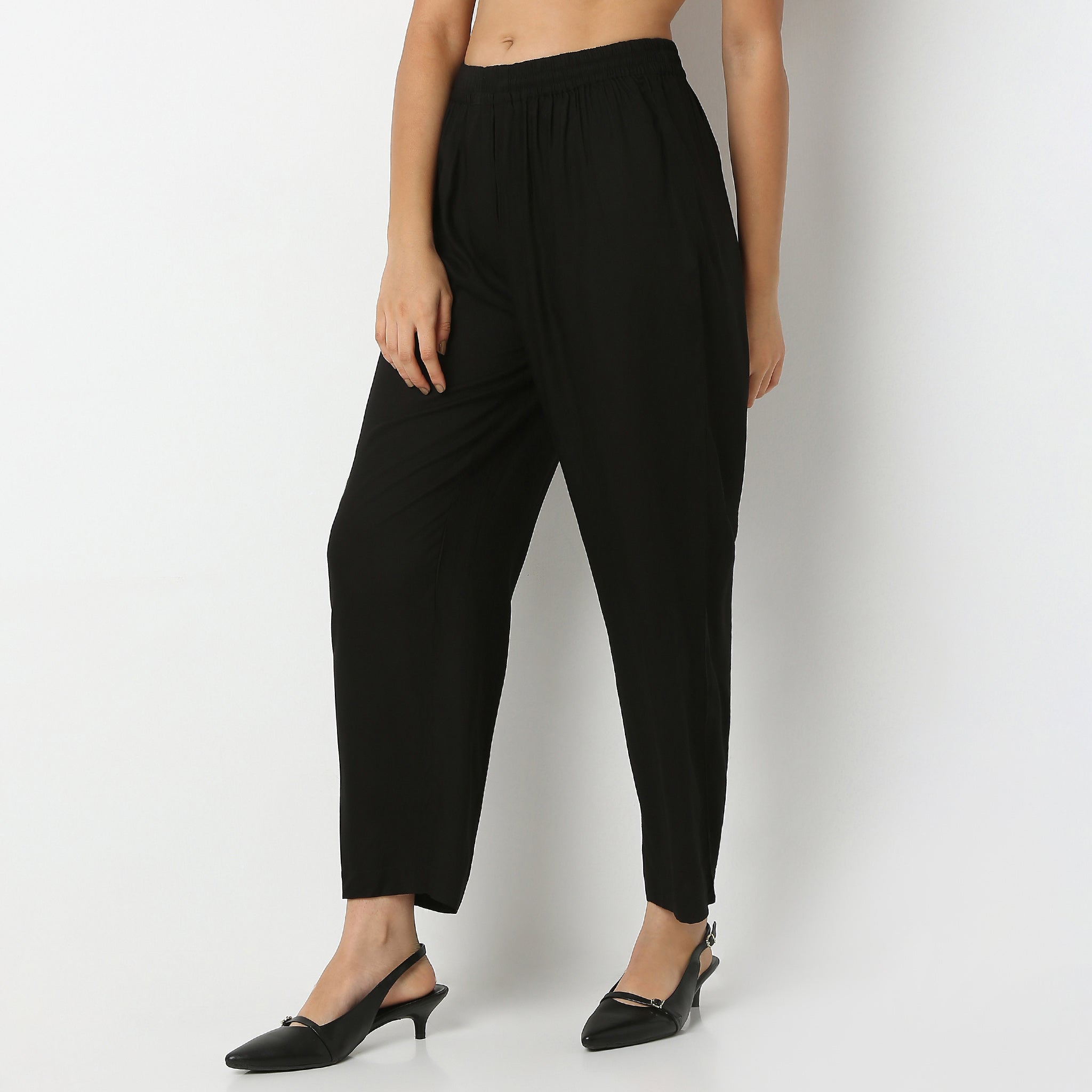 Experience the perfect blend of comfort and style with these Straight Fit Printed Ankle Length Mid Rise Pants. Crafted from 100% Rayon, these pants offer a soft and breathable feel, making them ideal for all-day wear. The woven fabric ensures durability while the printed pattern adds a touch of elegance to your wardrobe.