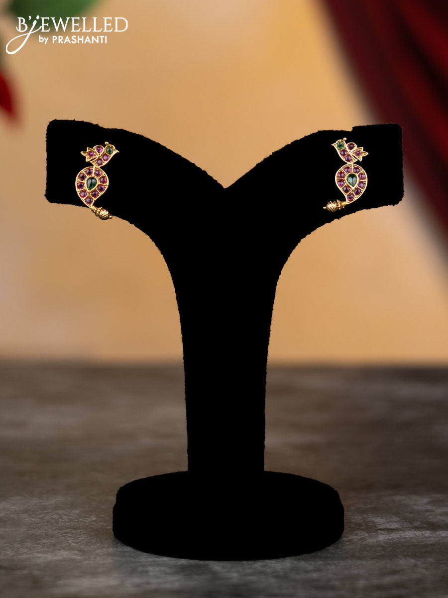 Antique attigai necklace ganesha & manga design with kemp stones and golden beads hangings