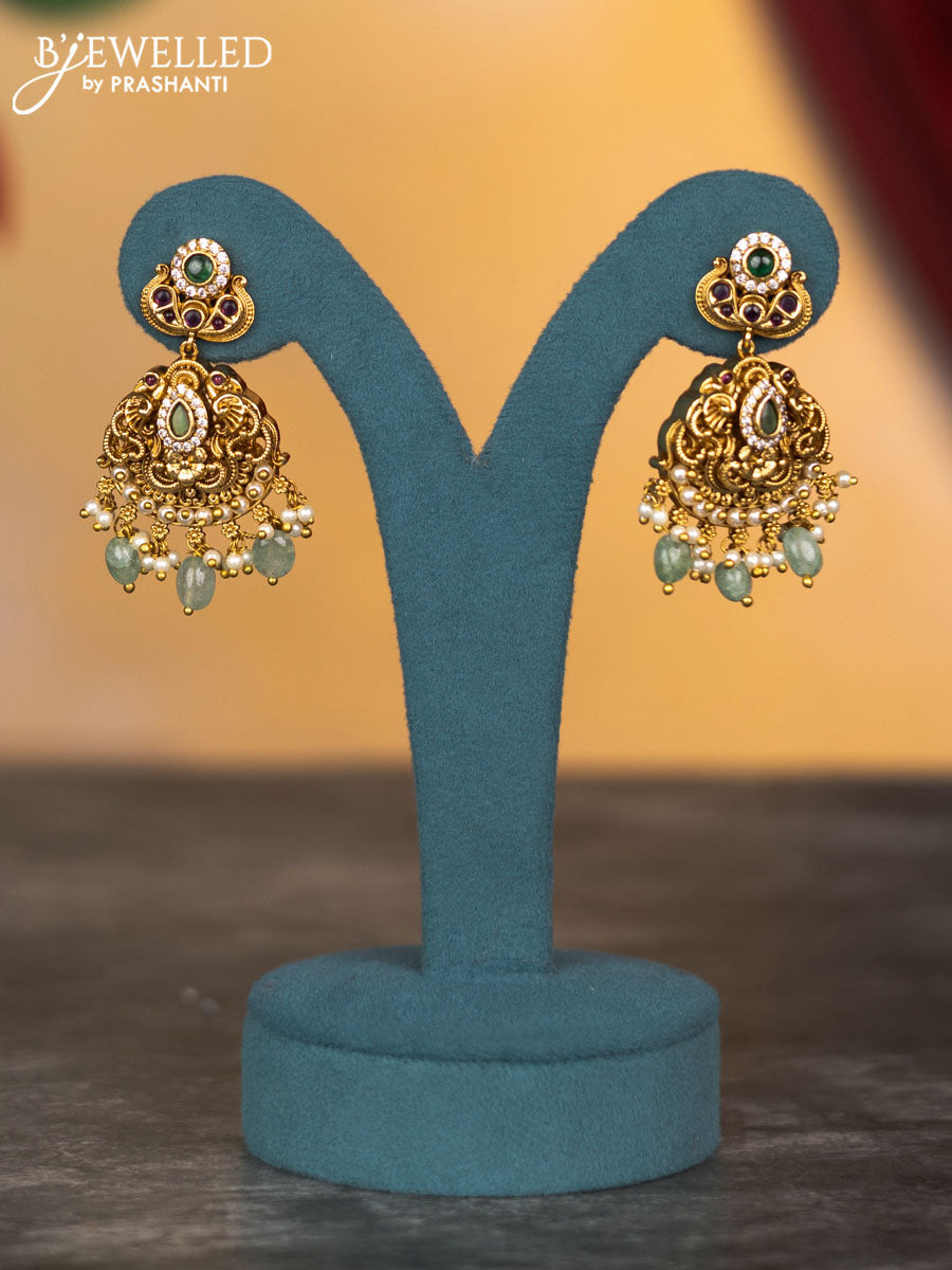 Antique double layer necklace peacock design with kemp & cz stones and pearl & mint green beads hangings