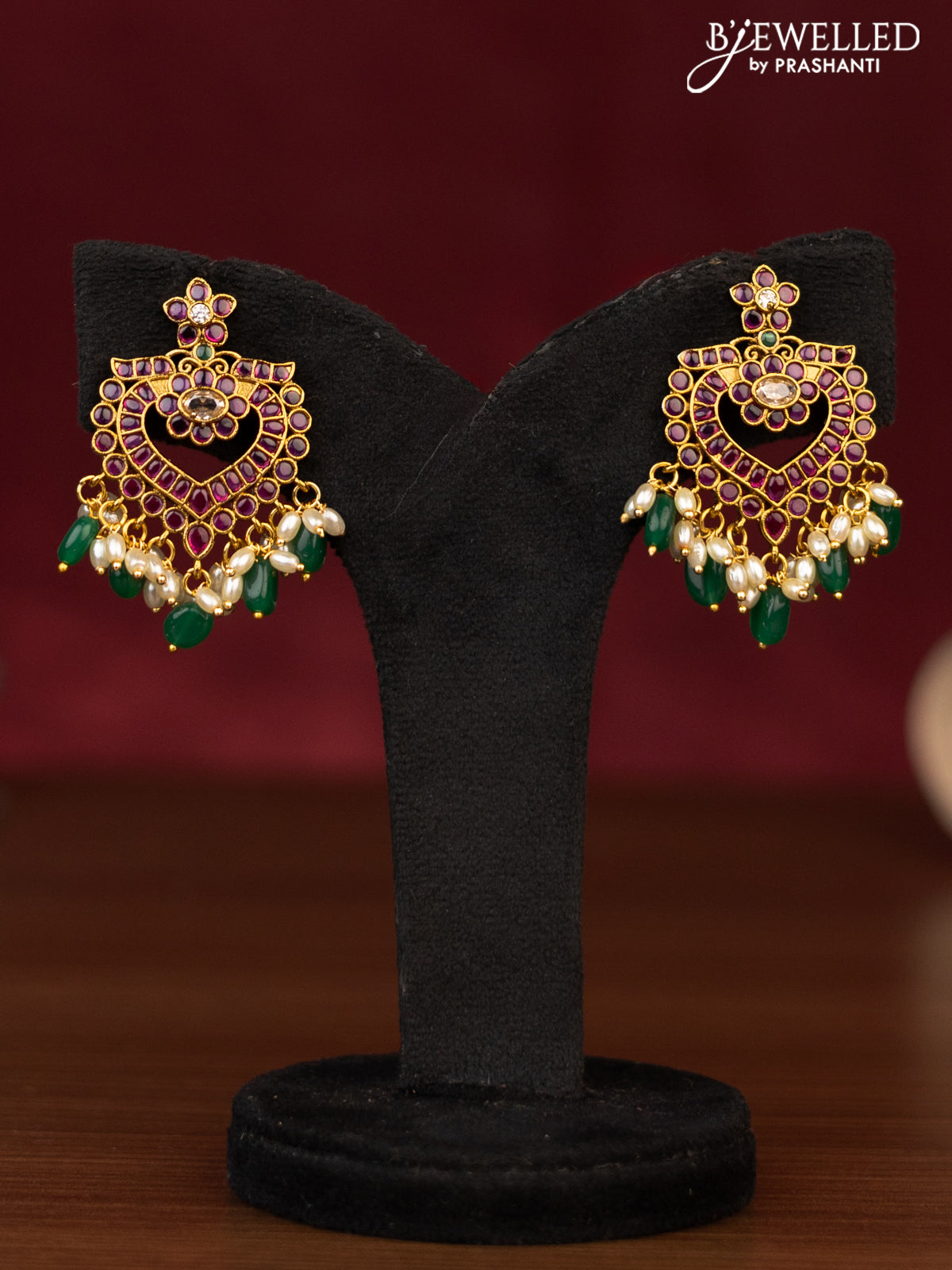 Antique guttapusalu necklace chandbali design with kemp & cz stones and pearl & beads hanging