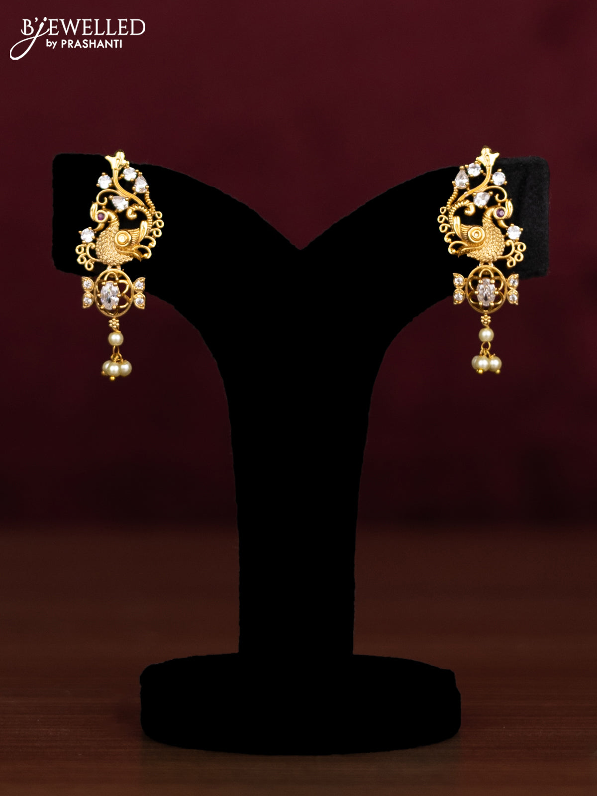 Antique guttapusalu necklace peacock design with cz stones and pearl hangings