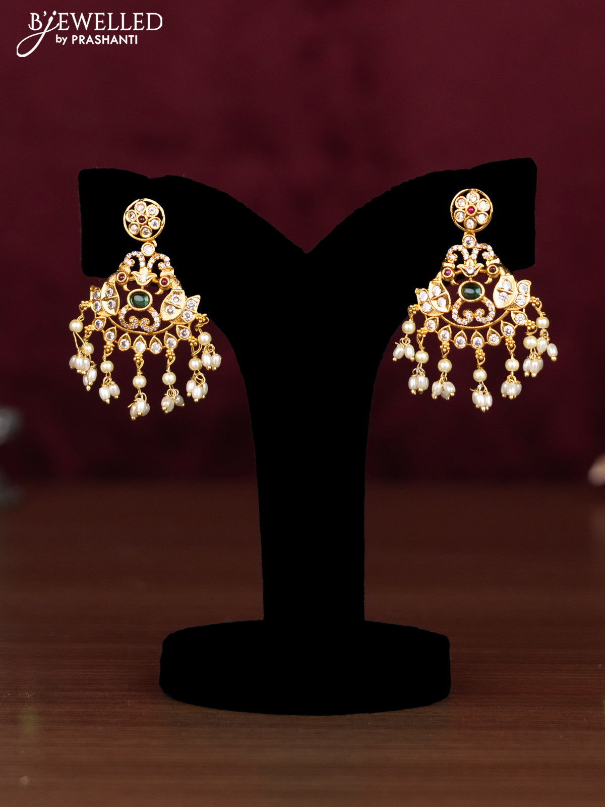 Antique guttapusalu necklace peacock design with kemp & cz stones and pearl hangings
