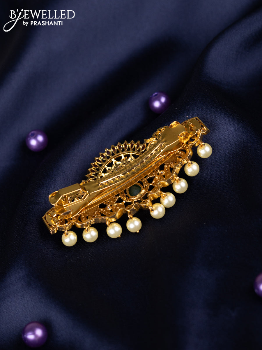 Antique hair clips medium size peacock design with kemp & cz stones and pearl hangings